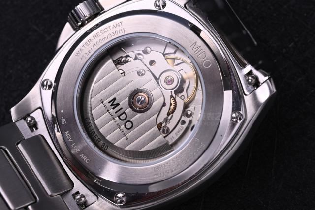 這只表采用背透設(shè)計(jì),雖然萬(wàn)元內(nèi)的機(jī)芯難以細(xì)究,但美度這只表的打磨較為細(xì)膩。自動(dòng)陀上刻有美度品牌標(biāo)志,夾板邊緣經(jīng)過(guò)倒角處理,雖不如高端機(jī)芯那般精細(xì),卻也工整有序。