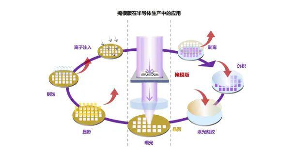 掩模版,也叫光罩,是集成電路制造時的圖形轉(zhuǎn)移工具或母板,承載著圖形和工藝技術(shù)信息,廣泛應(yīng)用于半導(dǎo)體、平板顯示、電路板、觸控屏等領(lǐng)域。其作用是通過曝光,把承載的電路圖形轉(zhuǎn)移到硅晶圓等基體材料上,從而實現(xiàn)集成電路的批量生產(chǎn)。