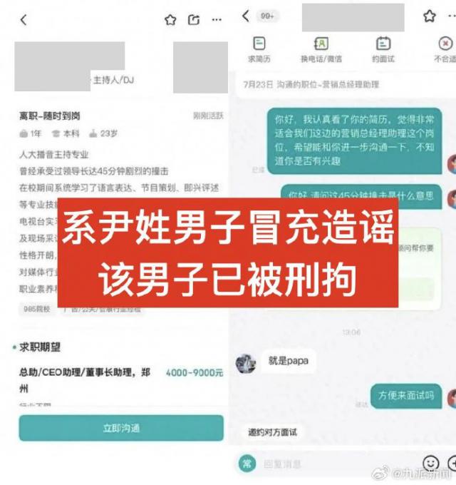 28日,BOSS直聘回應(yīng)“王某香”與招聘方溝通中的低俗信息。經(jīng)警方核實(shí),賬號(hào)使用人是尹姓男子,為尋求刺激,盜用他人信息,冒充女性求職,編造性暗示虛假信息,對(duì)被冒用女性造成惡劣影響。目前該男子已被警方刑事拘留。