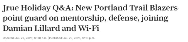 北京時(shí)間7月30日,開(kāi)拓者隊(duì)在圖拉丁的訓(xùn)練基地舉行新聞發(fā)布會(huì),正式介紹了他們休賽期最受關(guān)注的引援——控球后衛(wèi)朱 - 霍勒迪。這位兩屆全明星球員在與記者的采訪中,談到了與利拉德并肩作戰(zhàn)、為比盧普斯教練效力、對(duì)楊瀚森的印象以及指導(dǎo)年輕球員等多個(gè)話題。以下是采訪全部?jī)?nèi)容——