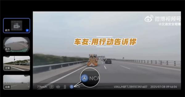 行車記錄儀顯示,當時問界M9處于NCA輔助駕駛狀態(tài),行駛速度約為107km/h。