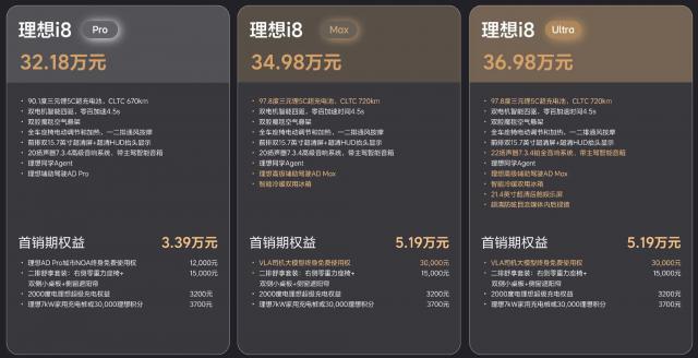 為回饋消費者,在9月7日24:00前下定理想i8 Pro,可享價值3.39萬元的首銷權(quán)益;下定理想i8 Max和Ultra版,可享價值5.19萬元的首銷權(quán)益。