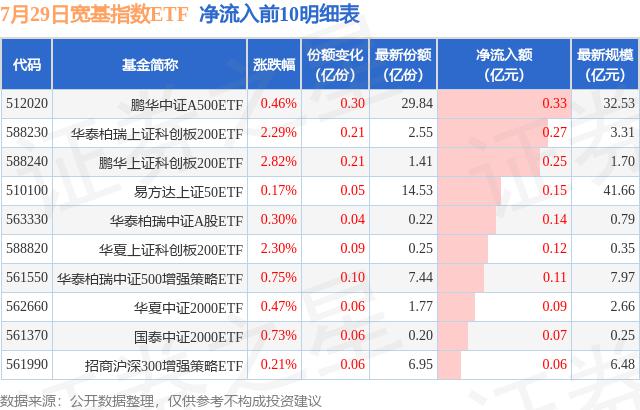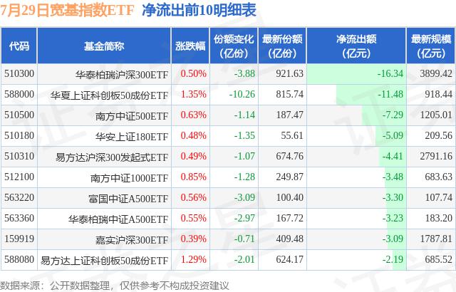 7月29日寬基指數(shù)ETF現(xiàn)大規(guī)模資金凈流出