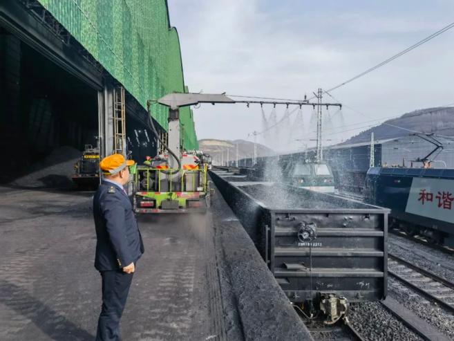 通過(guò)智能識(shí)別、精準(zhǔn)計(jì)量實(shí)現(xiàn)煤炭均衡鋪裝,再噴灑抑塵劑在煤面形成10毫米厚的固化保護(hù)膜,為煤炭加裝“防塵網(wǎng)”,有效減少運(yùn)輸過(guò)程中的揚(yáng)塵污染。