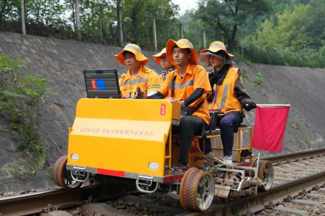 “雙軌探傷小車”不僅能夠精準(zhǔn)巡航、進(jìn)退自如,而且還能對(duì)兩條鋼軌同時(shí)進(jìn)行檢測(cè),較以往人工徒步推行,作業(yè)效率大大提高。