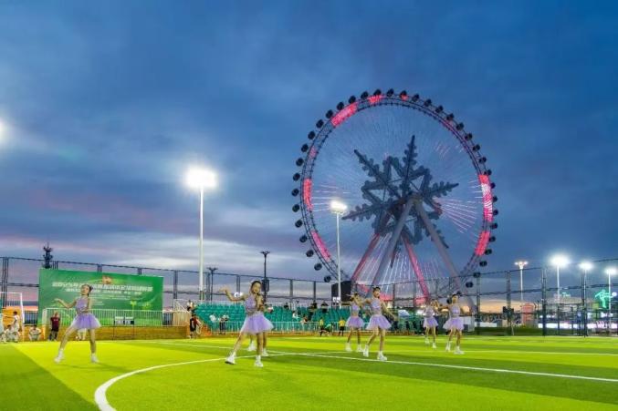 市民蘆先生是星光足球場(chǎng)的常客,他也贊不絕口:“星光足球場(chǎng)環(huán)境優(yōu)美,離我家很近,場(chǎng)地條件好,交通還便利,我有空就會(huì)和朋友過(guò)來(lái)踢一場(chǎng)。一起來(lái)的家人、朋友可以在看臺(tái)觀賽加油。特別是晚上,摩天輪點(diǎn)亮后,在球場(chǎng)下合影特別美,我們都稱這里是最美足球場(chǎng)。踢完球再去啤酒節(jié)逛逛,吃點(diǎn)喝點(diǎn),看看表演,一站式全解決了?!?/p>