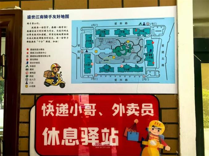 記者從服務(wù)該小區(qū)的菱建物業(yè)公司了解到,為解決騎手在小區(qū)配送時(shí)找樓難的問(wèn)題,該物企聯(lián)合各社區(qū),在其服務(wù)的34個(gè)住宅項(xiàng)目中,全面開(kāi)展小區(qū)“騎手友好地圖”繪制張貼以及暖心驛站設(shè)立工作。這不僅助力騎手提高效率,還讓他們切實(shí)感受到這座城市的“溫度”。