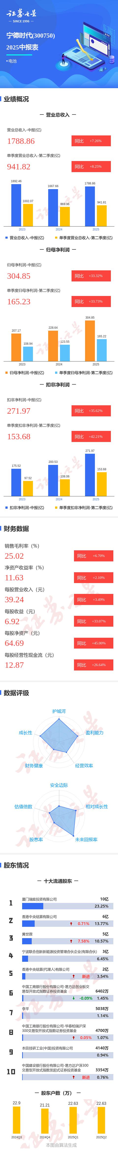 一圖讀懂寧德時(shí)代中報(bào):二季度單季凈利潤(rùn)同比增33.73%