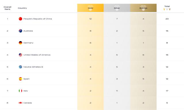 游泳世錦賽獎牌榜:中國隊12金領(lǐng)跑,單日錯失4沖金點