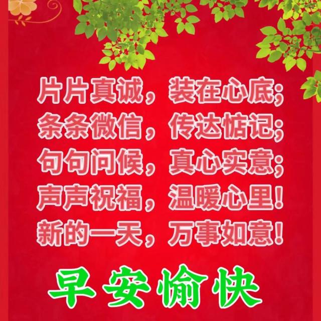早上好!送上一張素箋,寫下我深深的思念;截取一段時(shí)光,刻下我永恒的眷戀;傳來(lái)一聲問(wèn)候,陪你度過(guò)美好的一天;聽一曲飛花,送去我綿綿的祝愿。愿你每天都開心、快樂(lè)、幸福、順心!