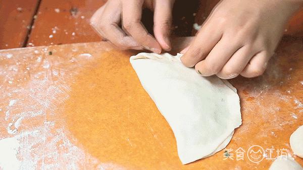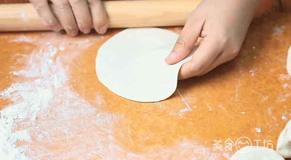 8. 取一個面劑子,搟成稍大些的圓餅皮。