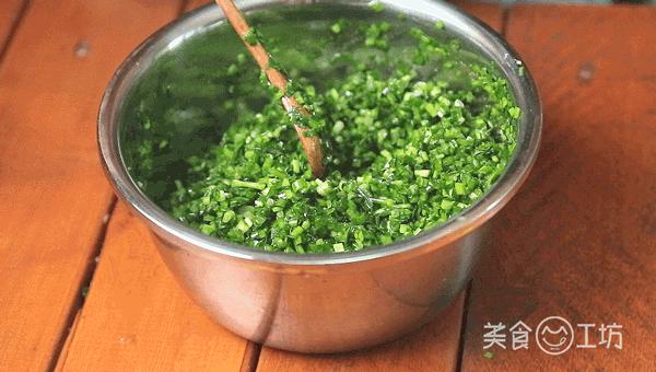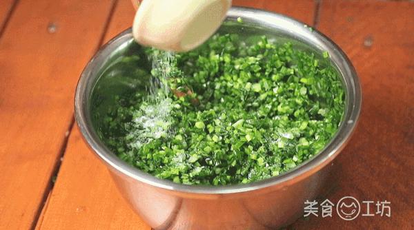 2. 餡料的調(diào)配:餡料里加入油可以控制出水,注意不要過度攪拌,不然韭菜也會出太多水。