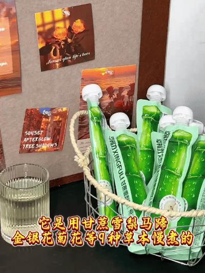 它用了甘蔗、雪梨、馬蹄、金銀花、菊花等9種草本,經(jīng)過4小時(shí)燉煮而成。
