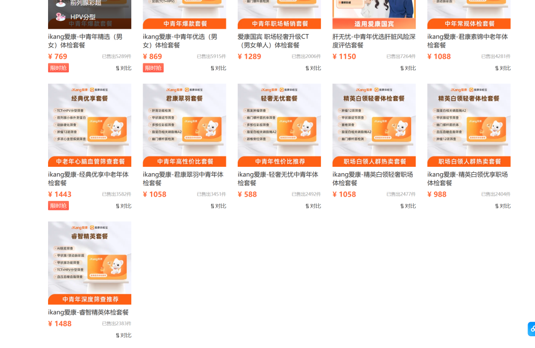 據(jù)張女士說,她的體檢套餐價(jià)格是1000元檔。我查了愛康官網(wǎng),中青年體檢中,1000元已經(jīng)屬于較高檔位,最高檔位為1400元。