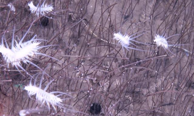 在堪察加海溝拍攝的管狀蠕蟲。(中國科學院深海科學與工程研究所供圖)