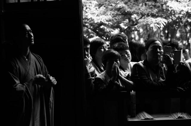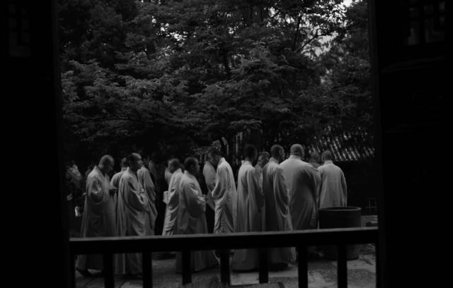 與 Gudzowaty 的疏離不同,中國(guó)攝影師王瑤的鏡頭充滿人文溫度。她善于捕捉高僧們生活化的瞬間,如齋堂里分食素面時(shí)的笑語(yǔ),藏經(jīng)閣內(nèi)師徒共閱古籍的專注。這些細(xì)節(jié)打破了“高僧不食人間煙火”的刻板印象,讓他們成為可親可近的“修行者鄰居”。