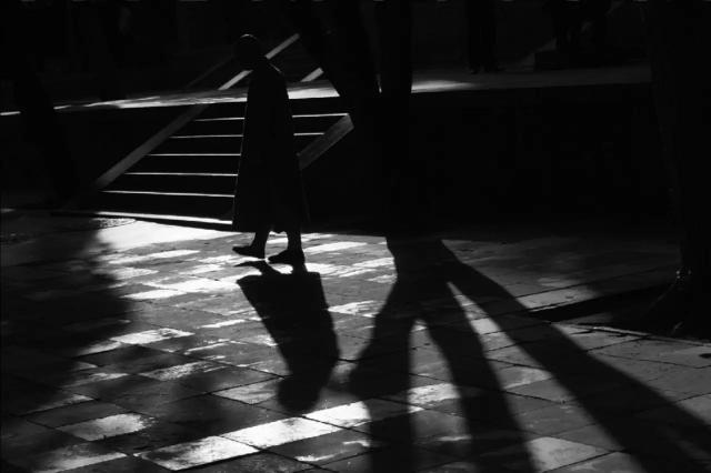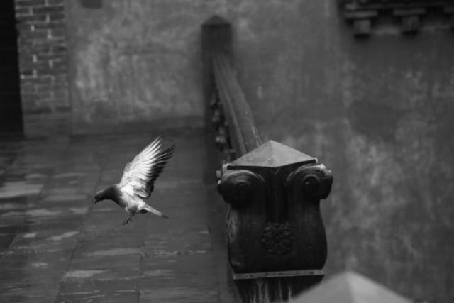 王瑤構(gòu)圖偏愛(ài)中近景,常以寺內(nèi)的草木、器物為前景,讓高僧的身影自然融入日常場(chǎng)景。她鏡頭下一位習(xí)武高僧,練拳間隙接過(guò)小沙彌遞來(lái)的水杯,喉結(jié)滾動(dòng)的吞咽動(dòng)作與身后飄揚(yáng)的經(jīng)幡形成動(dòng)靜對(duì)比,既有武者的剛勁,又有長(zhǎng)者的溫和。這種“不刻意”的抓拍,體現(xiàn)了中國(guó)文化中“大隱隱于市”的智慧,讓少林的禪意從廟堂走向生活。