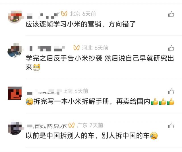 還有網(wǎng)友認為,外國車企方向錯了,應該學習小米的營銷方式,而不是單純拆解中國電動汽車。
