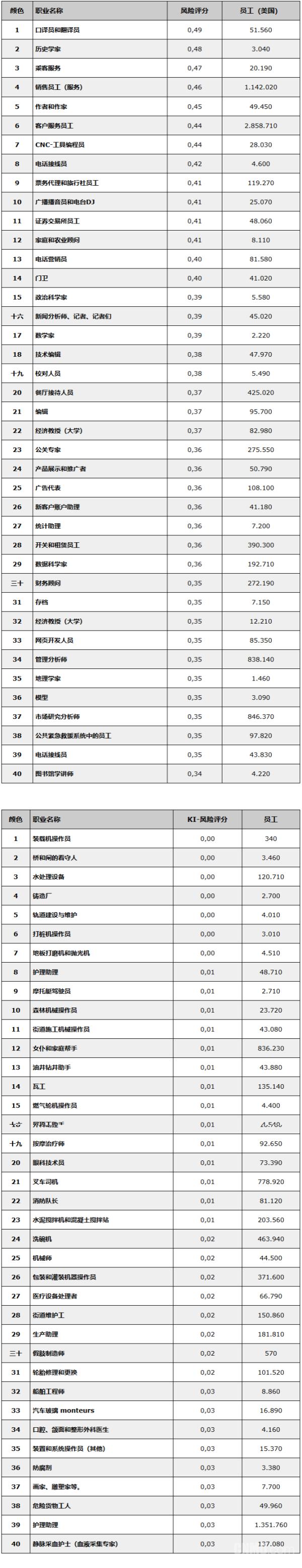 微軟新研究:40個最受/最不受人工智能威脅的職業(yè)揭曉