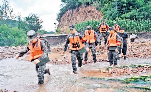 河北興?。喊酥I(yè)隊(duì)伍挺進(jìn)六道河鎮(zhèn)搶險(xiǎn)救災(zāi)