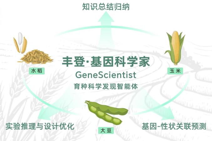 如今,“豐登·基因科學(xué)家”智能體具備了三項核心能力:一是智能知識整合,可自動構(gòu)建基因功能關(guān)聯(lián)網(wǎng)絡(luò),破解海量數(shù)據(jù)整合難題;二是創(chuàng)新預(yù)測,突破傳統(tǒng)依賴序列同源性的推理方式,基于知識圖譜對“基因—性狀及基因—環(huán)境”關(guān)系進行非線性建模,實現(xiàn)全基因組范圍的關(guān)鍵基因篩選;三是自主實驗設(shè)計,可實現(xiàn)提出問題—設(shè)計實驗—結(jié)果分析的完整科研流程,構(gòu)建高效、可擴展的基因功能發(fā)現(xiàn)體系。