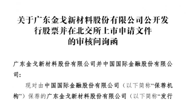 瑞財(cái)經(jīng) 嚴(yán)明會(huì) 近日,廣東金戈新材料股份有限公司(以下簡(jiǎn)稱:金戈新材)北交所IPO披露審核問(wèn)詢函,保薦機(jī)構(gòu)為中金公司,保薦代表人為杜書(shū)、潘晨,會(huì)計(jì)師事務(wù)所是天健會(huì)計(jì)師事務(wù)所。