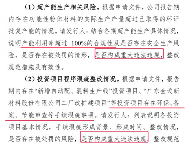 此外,公司報(bào)告期內(nèi)“新增自動(dòng)配、混料生產(chǎn)線”投資項(xiàng)目、“廣東金戈新材料股份有限公司二廠改擴(kuò)建項(xiàng)目”等投資項(xiàng)目存在環(huán)保、備案、節(jié)能審查等手續(xù)瑕疵事項(xiàng)。