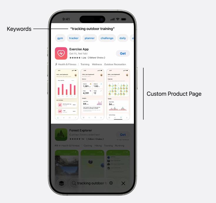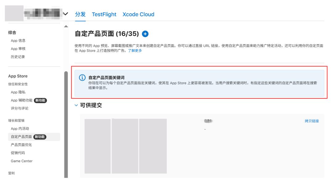即日起可在App Store Connect中為每個(gè)自定產(chǎn)品頁“添加”關(guān)鍵詞