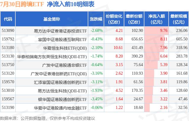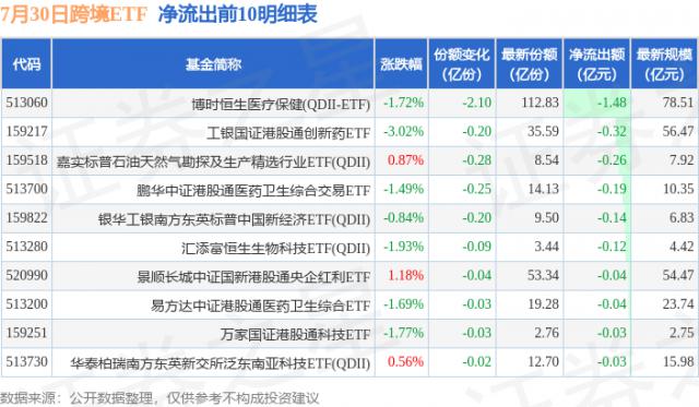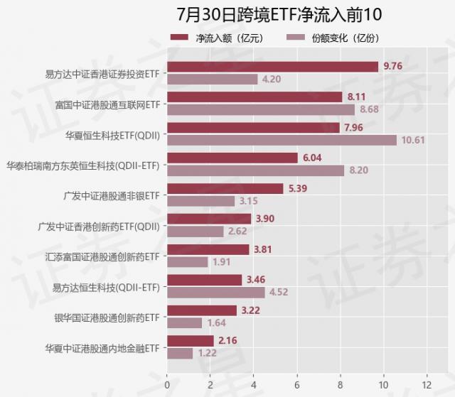 7月30日跨境ETF資金凈流入達(dá)70.46億元