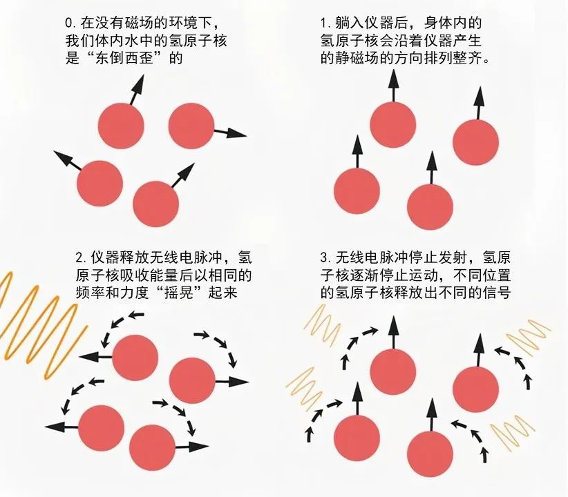 簡單概括,核磁共振成像儀的工作流程如下(不想了解原理可跳過以下3個自然段)。