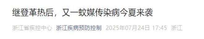 浙江疾控:伴隨升溫和雨水,蚊媒傳染病的風(fēng)險增加
