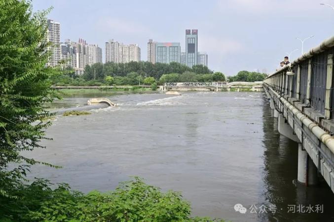 密云水庫(kù)泄流水頭通過(guò)白廟橡膠壩 圖片源自北京城市副中心報(bào)
