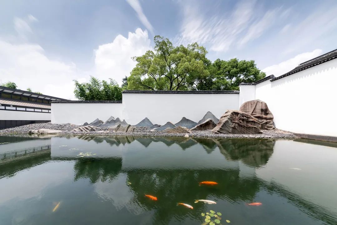 《長(zhǎng)物志》視水石為園林靈魂,貝聿銘在蘇州博物館將主庭院北墻化為水墨長(zhǎng)卷,用泰山石切片形成抽象山水,直承對(duì)太湖石的推崇。水池采用幾何形態(tài),倒映建筑輪廓,暗合東方哲學(xué),池中游魚細(xì)節(jié)呼應(yīng)《長(zhǎng)物志》對(duì)觀魚的講究。