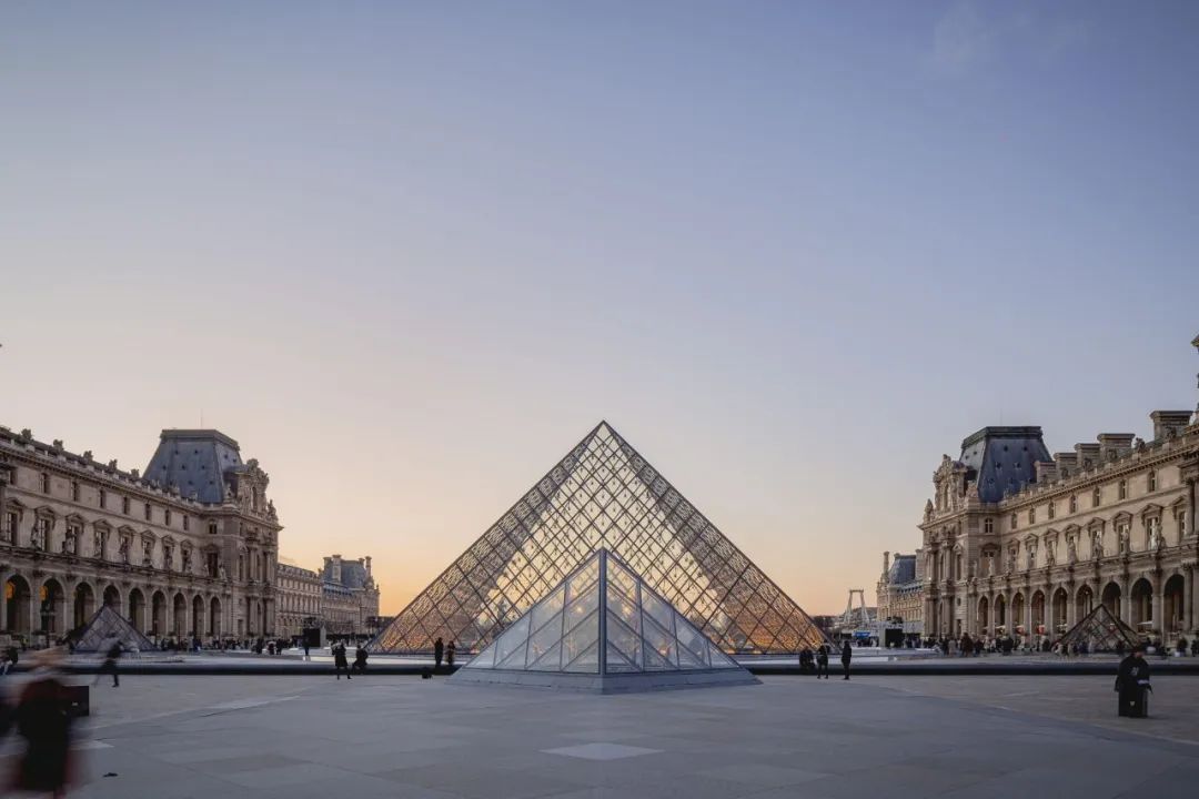 以盧浮宮金字塔為例,貝聿銘用51°錐角呼應(yīng)吉薩金字塔,賦予其透明現(xiàn)代性,玻璃幕墻納入巴黎天空,實(shí)現(xiàn)“借景”的全球化表達(dá)。