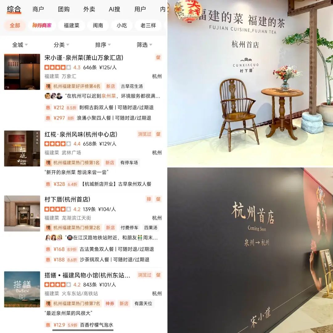 最近,打開(kāi)杭州的大眾點(diǎn)評(píng),多家新開(kāi)的福建菜館映入眼簾,像宋小謹(jǐn)·泉州菜、村下厝、搭鱔·福建風(fēng)物小館等。網(wǎng)友在評(píng)論區(qū)直言:“最近泉州菜的風(fēng)很大”。