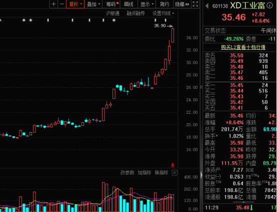 值得關注的是,算力龍頭之一的工業(yè)富聯(lián)近期不斷走高,早盤股價漲幅超8%,股價創(chuàng)出歷史新高,總市值站上7000億元,近6個交易日累計上漲超36%。