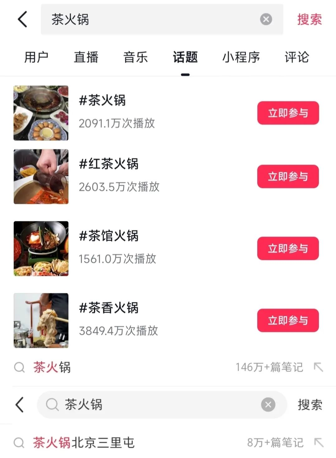 今年以來(lái),重慶、北京、蘇州等全國(guó)多個(gè)城市興起了一批“茶火鍋”門店。這批門店不僅在裝修設(shè)計(jì)上融合了“茶文化”,系列食材直接與茶結(jié)合,就連鍋底,也是直接用茶湯做的。在抖音上,“茶火鍋”相關(guān)話題的播放量已突破億次大關(guān)。小紅書平臺(tái)上,“茶火鍋”相關(guān)筆記數(shù)量多達(dá)150萬(wàn)+條。 有商家介紹,平日晚上8點(diǎn)左右,門店外排隊(duì)人數(shù)至少能到200人。周末用餐高峰期,排隊(duì)半小時(shí)到一個(gè)半小時(shí),也是門店經(jīng)營(yíng)常態(tài)。
