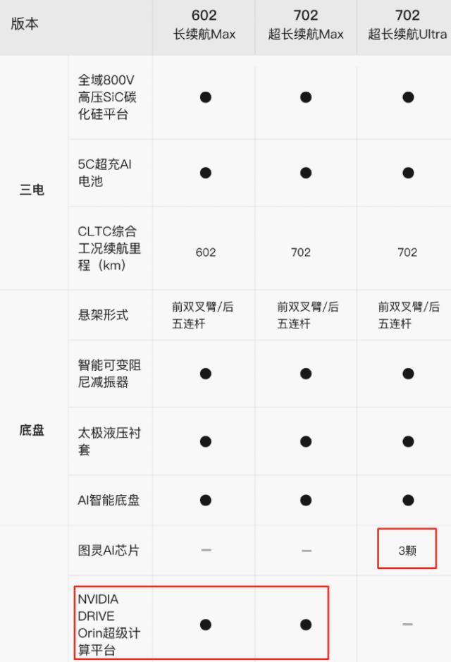 小鵬自研的圖靈芯片,采用臺(tái)積電 7nm 工藝,單顆算力 750 TOPS,G7 Ultra 裝了三顆,理論上能實(shí)現(xiàn) 300 億參數(shù)的本地大模型部署,但智駕還沒調(diào)好。