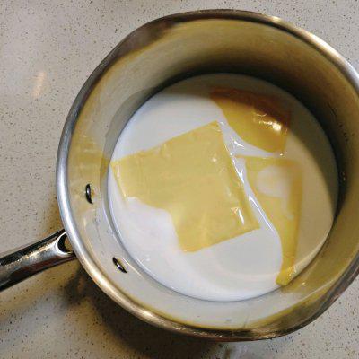 2、300g 牛奶? 25g 糖? 3 片芝士片,放入奶鍋中。