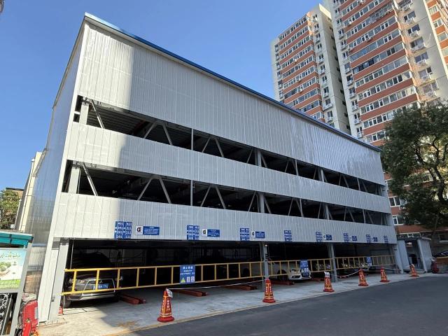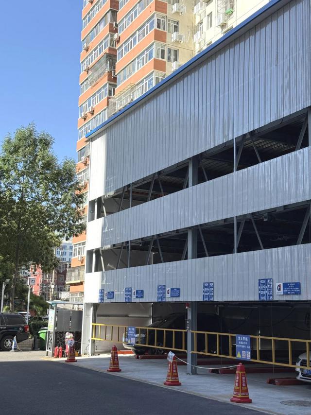 此外,為解決老舊小區(qū)停車難的問題,交通部門還挖掘 周邊企業(yè)自有用地新建停車設(shè)施。海淀區(qū)湖北大廈周邊人口密集、商業(yè)繁榮,緊鄰中關(guān)村南大街 40 號院社區(qū),區(qū)城市管理委(交通委)聯(lián)合屬地街道、市場監(jiān)管、消防、規(guī)自、生態(tài)環(huán)境等部門,在湖北大廈院內(nèi)東側(cè)新建一處 10 層立體停車設(shè)施,可提供 40 個(gè)車位,為大廈及周邊居民提供了便利。