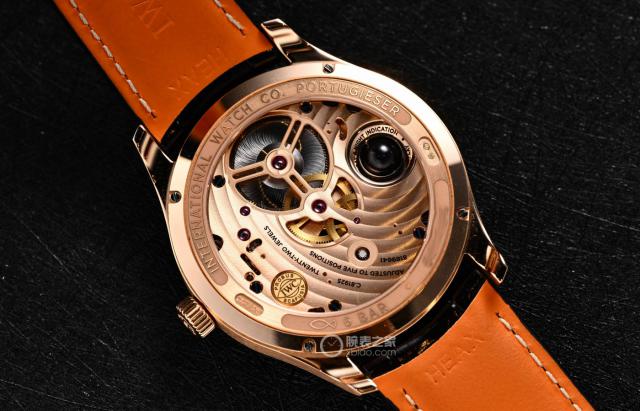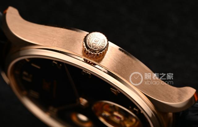 表殼采用 18K Armor Gold ? 硬金材質(zhì)打造,這是萬國獨家制造的紅金材質(zhì),工藝復(fù)雜,比傳統(tǒng)紅金更耐磨,顏色也更豐富。42.5 毫米的表殼,表耳及表圈經(jīng)過拋光,表殼側(cè)面則采用大面積拉絲。