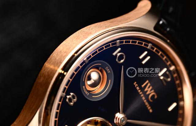 2024 年推出的手動上鏈晝夜顯示陀飛輪腕表,在保證 2021 年陀飛輪腕表精簡的基礎(chǔ)上,于 9 點位處增加了一個“小圓球”,用于顯示晝夜更替。雖然晝夜顯示和陀飛輪單獨來看都較常見,但一個腕表僅呈現(xiàn)這兩種功能的情況幾乎沒有。這種設(shè)計也是萬國再次采納了學(xué)徒的獨特創(chuàng)想。