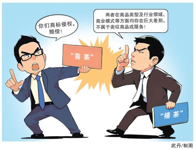 被告辯稱,“禧茶”商標(biāo)在香港已注冊(cè),與“喜茶”商標(biāo)區(qū)別明顯?!跋膊琛鄙虡?biāo)核定使用的商品或服務(wù)是43類茶館、餐廳等服務(wù),“禧茶”產(chǎn)品則系32類瓶裝飲料,兩者在商品類型、行業(yè)領(lǐng)域、商業(yè)模式、生產(chǎn)部門、銷售渠道、招商模式、消費(fèi)群體等方面存在巨大差別,不屬于類似商品或服務(wù)。