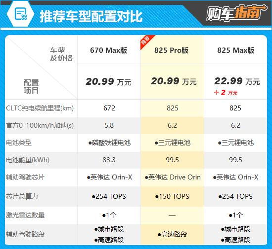 與售價(jià)更高的825 Max版相比,推薦車(chē)型僅在輔助駕駛方面稍弱。但該功能在城市路段復(fù)雜場(chǎng)景下作用不大,高速路段又不依賴(lài)高算力芯片,考慮到2萬(wàn)元的差價(jià),推薦車(chē)型更有吸引力。