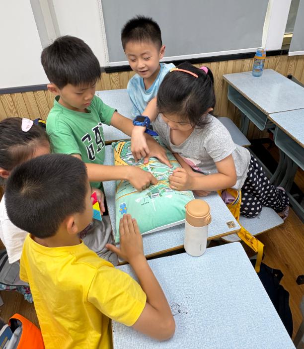 活動(dòng)里,“小勇士們”通過(guò)團(tuán)隊(duì)協(xié)作,仔細(xì)觀察“靜安地圖”上標(biāo)注的標(biāo)志性地標(biāo)、銀行網(wǎng)點(diǎn)及其周邊設(shè)施,和隊(duì)友分工合作回答競(jìng)答問(wèn)題,從而學(xué)會(huì)識(shí)別科技在生活中的存在。