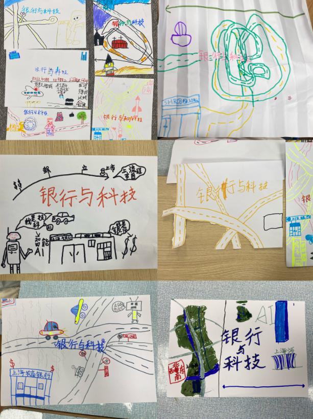 45分鐘的課程結(jié)束時(shí),“小勇士”們根據(jù)所學(xué),揮動(dòng)畫(huà)筆繪制出各具特色的科技金融海報(bào)。通過(guò)繪畫(huà)簡(jiǎn)報(bào),他們進(jìn)一步將科技、金融與生活緊密結(jié)合。