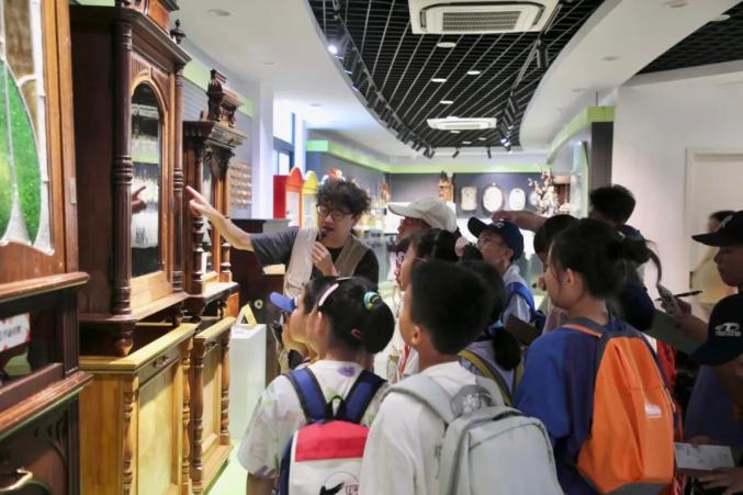 研學(xué)之旅的第一站是充滿時光印記的大來時間博物館。館內(nèi)陳列著各式各樣的時鐘,有莊重的落地鐘、精巧的座鐘,還有別致的掛鐘,踏入其中,仿佛進入了一條時間長廊。講解員詳細地講解了機械鐘的運作原理,還著重介紹了承載著上海記憶的知名老品牌“三五牌”時鐘的歷史淵源和精妙構(gòu)造。
