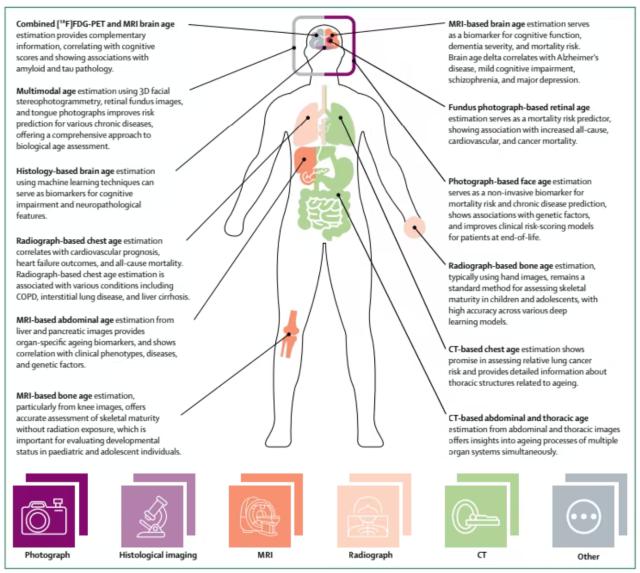 近期,發(fā)表在《柳葉刀·健康長壽》雜志上的一項綜述,總結(jié)了基于人工智能的多種醫(yī)學(xué)影像技術(shù)在生物年齡預(yù)測領(lǐng)域的重要進展。研究團隊系統(tǒng)整合了腦部 MRI、胸腔 CT 及 X 光、腹部 CT 與 MRI、骨骼影像及面部照片等多模態(tài)影像的數(shù)據(jù)驅(qū)動方法,深入探討了人工智能年齡估計中的模型評估流程、臨床應(yīng)用前景、技術(shù)和倫理難點,為未來個性化醫(yī)療和健康風(fēng)險管理開辟了新思路。