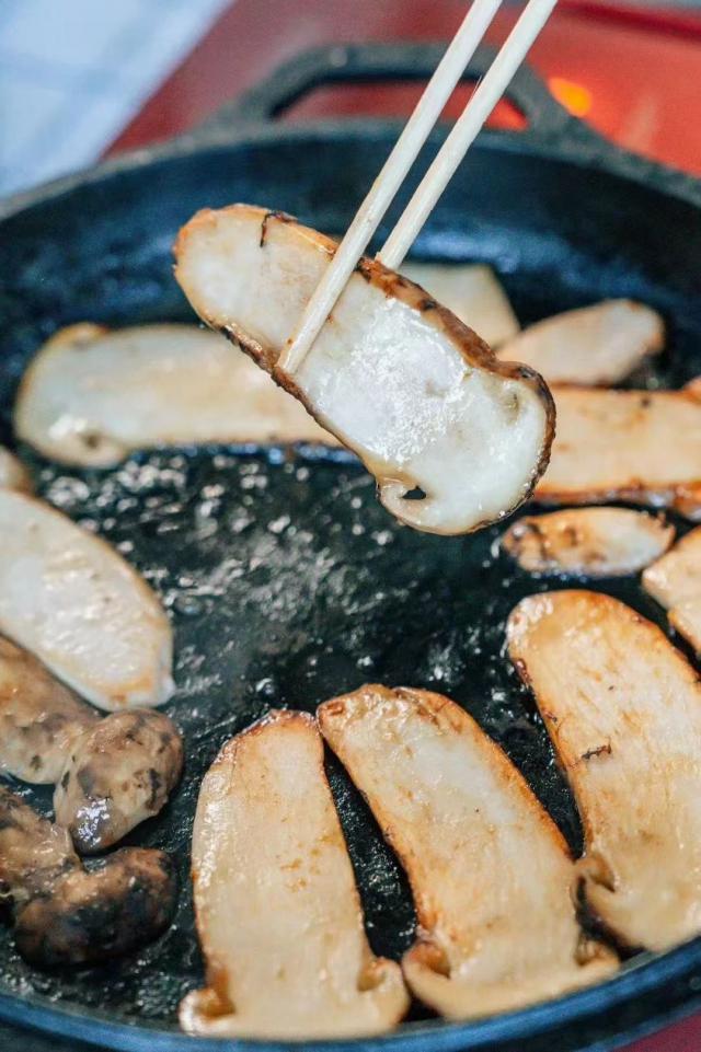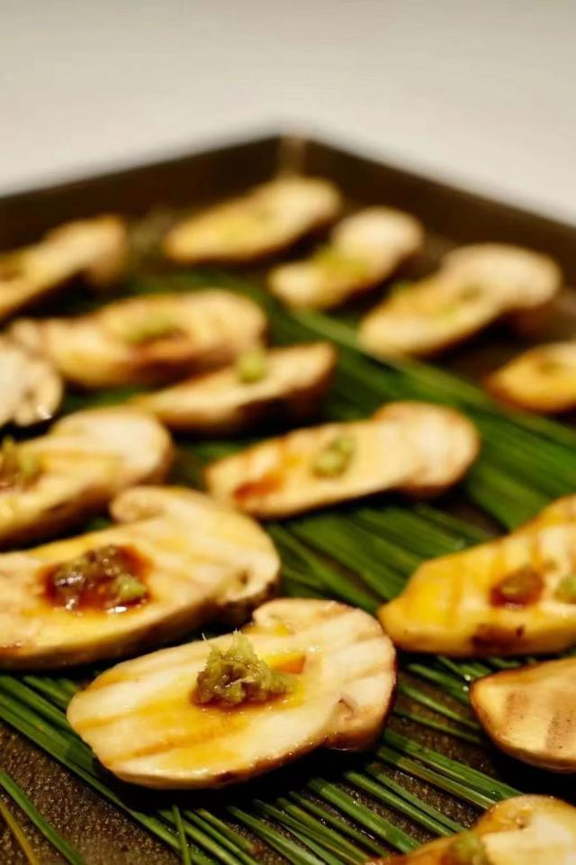 煎烤的松茸,表面微微滲出晶瑩的油脂時,只需要撒上一小撮鹽,就有一股濃厚的自然氣息,那復(fù)合的鮮美能秒殺大部分的肉類。