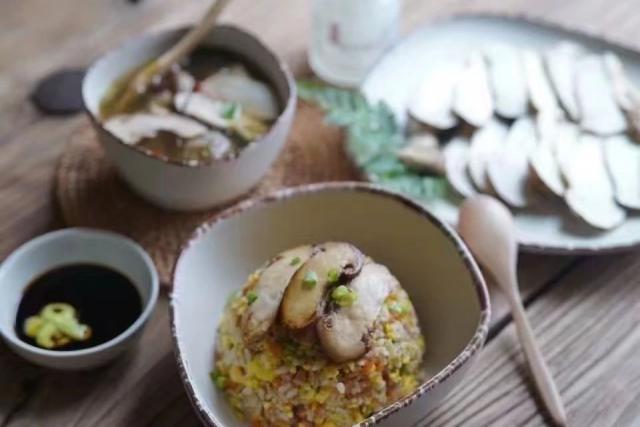 松茸飯是比較實惠、接地氣的吃法。把松茸洗凈切片,加入臘腸、蘿卜丁、玉米丁等,和大米一起放入電飯煲煮就可以了。
